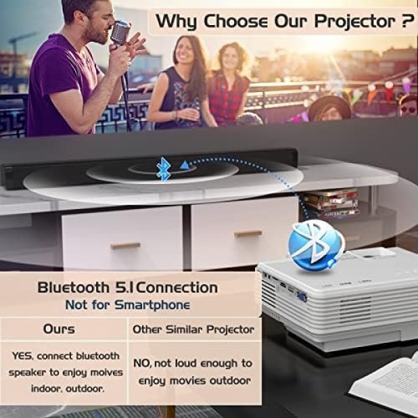 2023 Projector with 100” Projector Screen, Mini Projector Bluetooth, Latest