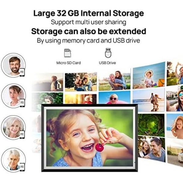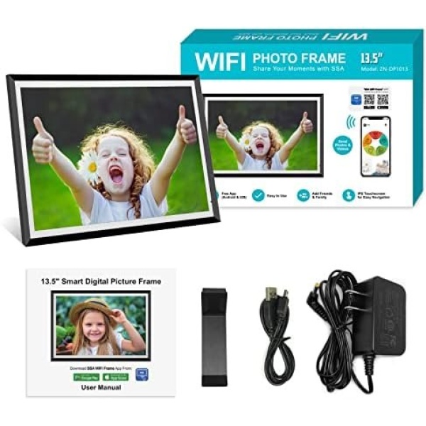 【3K IPS TOUCH SCREEN & LIGHT SENSOR】The 13.5″ 3K IPS touch screen with 3000×2000 resolution can display amazing clear and vivid landscape and portraits, recalling your precious memories. The light sensor makes the frame automatically adjust the brightness to give you a special viewing experience.