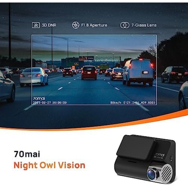 【Powerful Night Vision】4K dash cam A800S delivers excellent low-light performance that exceeds the traditional 3.3x. With 3D DNR (Dynamic Noise Reduction) technology and full 7-Glass/F1.8 aperture lens, the camera minimizes image noise. A dash cam that can be used with confidence at any time of the day or in certain weather conditions