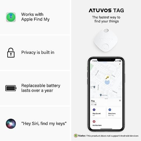 【Exact Location】ATUVOS Tracking Tag applies to Apple Find My network without monthly fees. You can use it to locate your travel luggage, keys, backpack, handbag and so on.