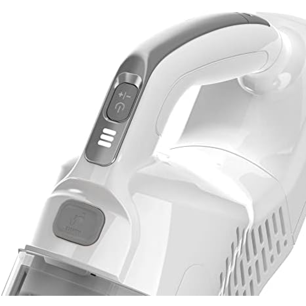 ACCESS CONFINED SPACES UNDER COUCHES AND BEDS with front-facing dustbin which allows stick vacuum to lie flat while cleaning