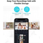 Smart AI Detection & Instant Alerts – Receive instant alerts on your phone if human, motion or abnormal sound detected in your house. Automatically record a 10-15 seconds alert video to the cloud and it will be saved for 24 hours (no subscription or monthly fees required).