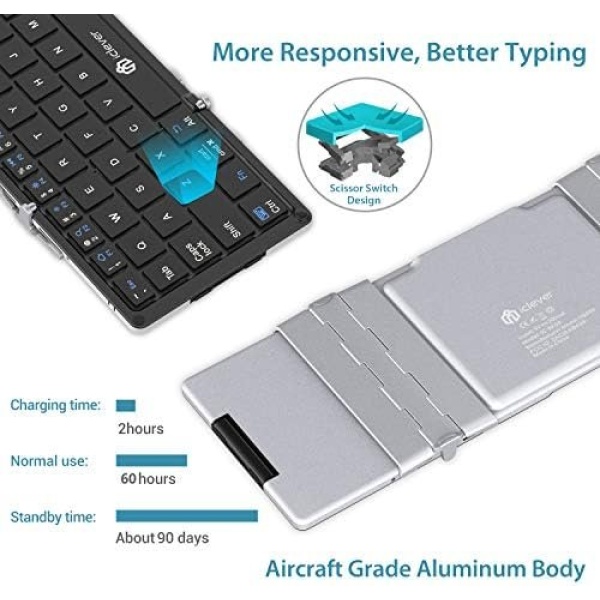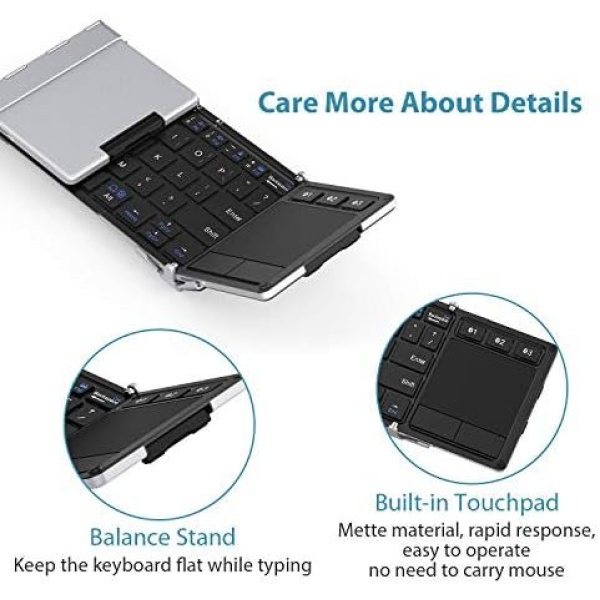 Foldable Keyboard Bluetooth, iClever BK08 Folding Keyboard with Touchpad