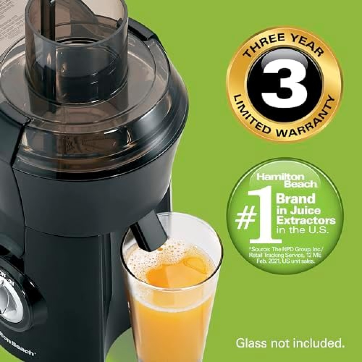 INCLUDES A 3 YEAR LIMITED WARRANTY: This durable fruit and juice machine is backed by Hamilton Beach, America’s #1 juice extractor brand,* with a 3 year limited warranty.