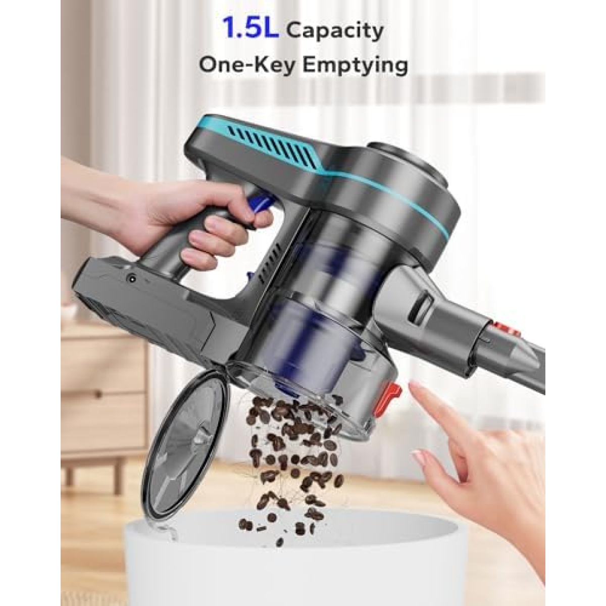✅[1.5L XL DUST CUP & V-SHAPED FLOOR BRUSH] Large dust cup easily holds more dust, one-touch emptying avoids contact with dust. New V-shaped anti-tangling brush effectively solves the problem of tangling, which is common with traditional vacuum cleaners.