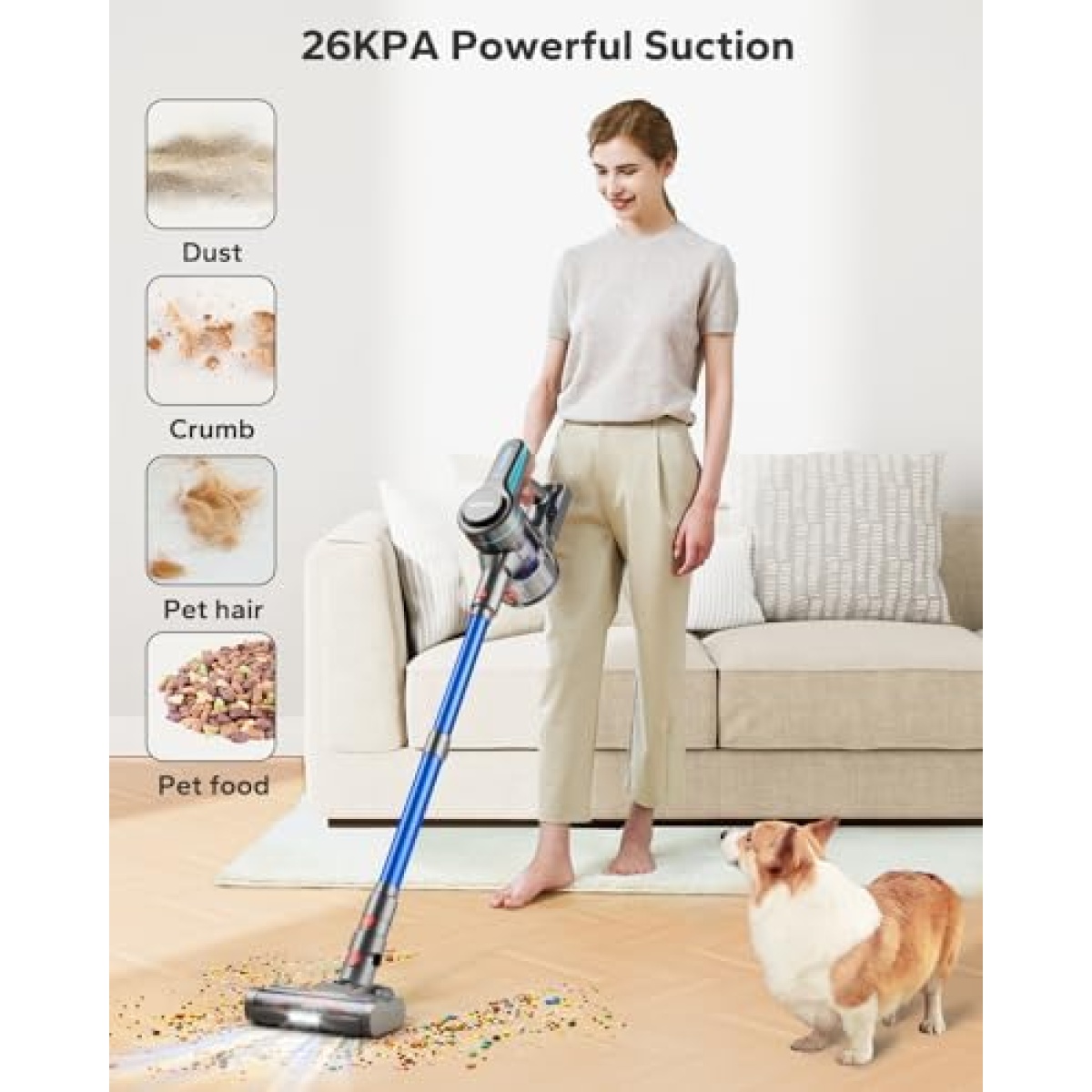 HOMPANY Cordless Vacuum Cleaner, 26Kpa Powerful Suction Stick Vacuum, 45Mins