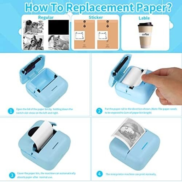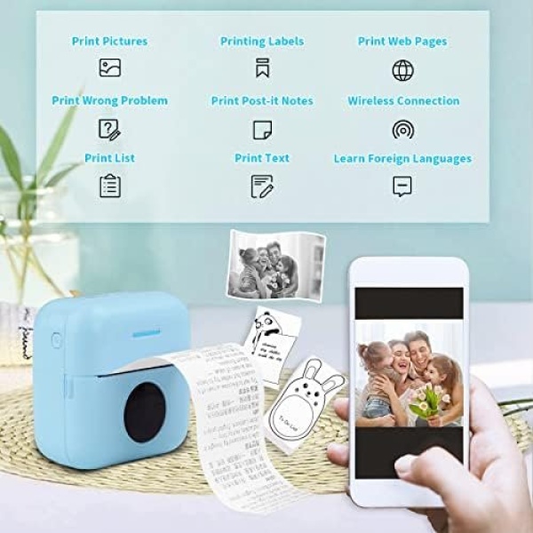 🎁Multipurpose & Perfect Gifts: Our inkless printer for printing black and white photos, memos, labels, cute pet stickers, QR codes, etc. Information and images on the phone screen can be printed instantly. If you need a clearer print, please select the original image and darken the print. Improve efficiency by helping you organize and summarize work plans, shopping lists, and more. The ideal birthday, anniversary, Christmas gift for anyone.