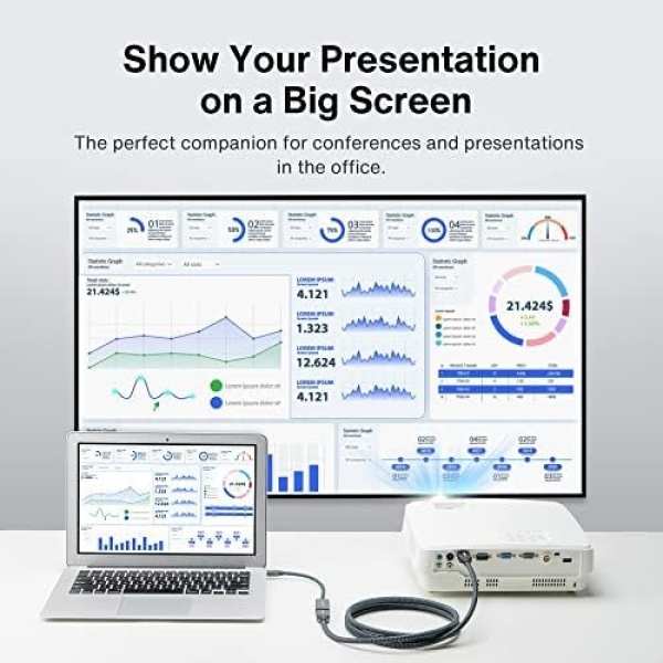 ✨【Incredible Durability】Noticeable difference in build quality. Slim shell size frees you from the worry of getting in the way of nearby ports. Nylon braided jacket withstands over 15,000 bends, not easily broken anymore. Multiple shielding, 24K gold-plated connectors, provide reliable interference-free data transmission, and improve transmission stability.