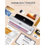 【THERMAL & COLD MODES】with thermal and cold laminating mode.They are perfect for different type of laminating pouches. The thermal laminating mode has three gears suitable for three thicknesses of laminating pouches, 3mil, 5mil, 7mil