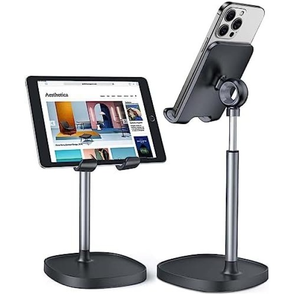 WEIGHTED ANTI-SLIP BASE: This cell phone stand for desk is equipped with a weighted base and an aluminum alloy rod. Therefore, this iPhone stand holder is stable enough to support all smartphones or small tablets, such as 2023 iPad Mini, iPhone 15 14 pro max 13 Pro/13 Mini/12/12 Pro/12 Pro Max/12 Mini/iPhone 11/11 Pro/Max/X/MAX/XR/8/8P, Samsung Galaxy S22, S22, Note 10/9/8/Plus, S10/S9/S8, Kindel, Switch, iPad Mini,iPad Air, etc.We recommend the most stable compatible device size is 4-10 inchs