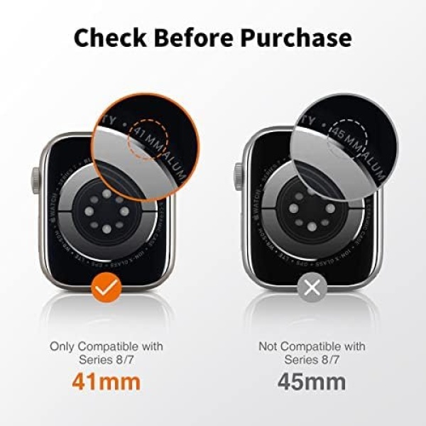 🎄 Easy Installation: Please watch the installation tutorial video before putting on the Apple Watch Series 9 / 8 / 7 41mm screen protector. ⛄️ The key steps of installation are all highlighted in the video.