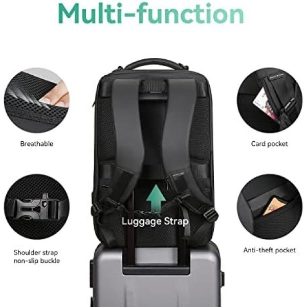 ▶ Multi-functional Design: Tech backpack with back U shaped three-dimensional ventilation design helps with air convection, ventilation and heat elimination. Wide breathable mesh shoulder straps with plentiful sponge pads help relieve the stress from your shoulder. The back of the backpack luggage strap design makes the journey easier. In addition there are anti-theft pocket design, shoulder strap non-slip buckle design, card pocket design, etc.