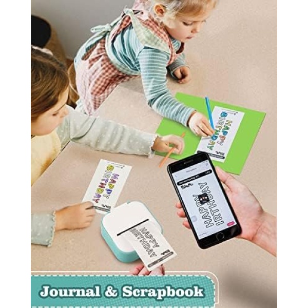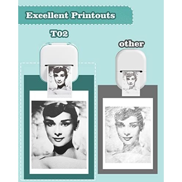 【Multifunctional Mini Printer】With T02 mini sticker maker machine, you can print photos, pictures, study notes, to-do lists and customize bookmarks, labels, journals, greeting cards. Compatible with iPhone, iPad, Samsung, Huawei and other Android phones as well as tablets