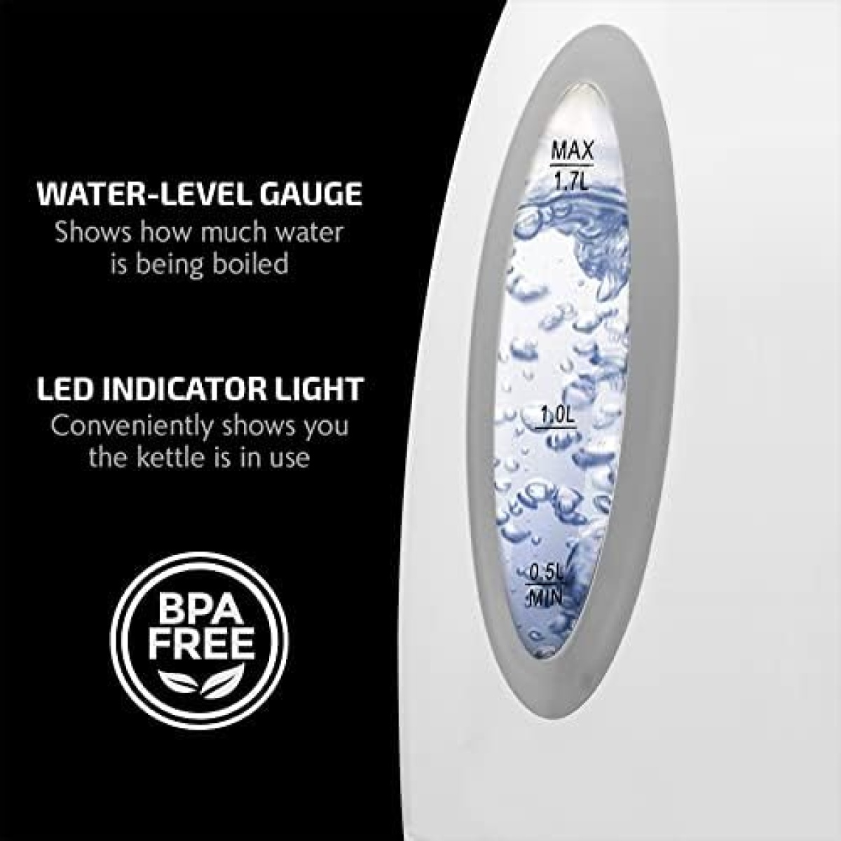 Boils Water in Flash – This electric kettle operates on 1100W (120V) and boils a full 1.7L of water in minutes! It is 50% more efficient than traditional stovetop kettles in reducing your daily electricity use.