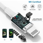 iPhone charger cable are made of high purity copper core and smart intelligent chip with overcharge protection, stable current protection, automatic switching and battery protection, which can support up to 2.4A fast charging