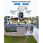 355°PAN & 50° TILT. Control it up and down, left and right, you can easily control the PTZ outdoor camera by phone app to see every corners of your home.