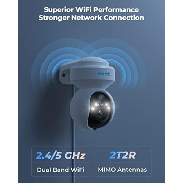 2.4/5 GHZ WIFI. Reolink E1 Outdoor provides dual-band WiFi options to strengthen network performance. PS: this WIRED wifi camera needs to be plugged into an adapter to get continuous power.