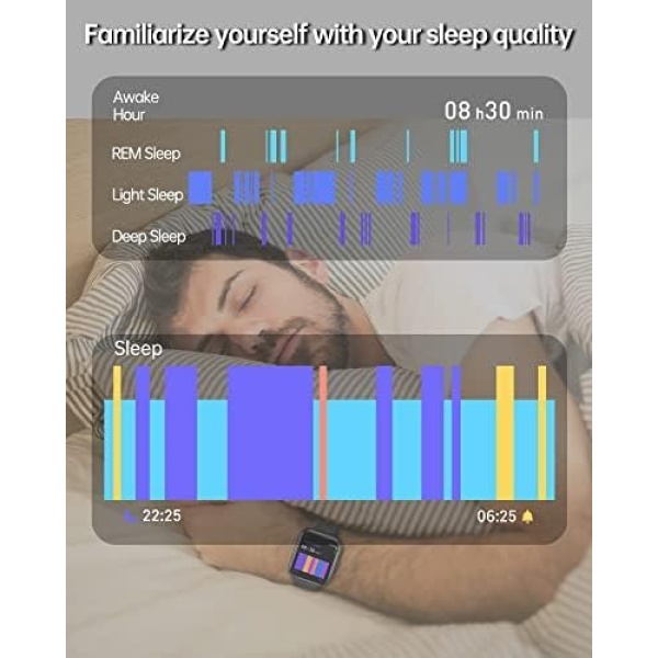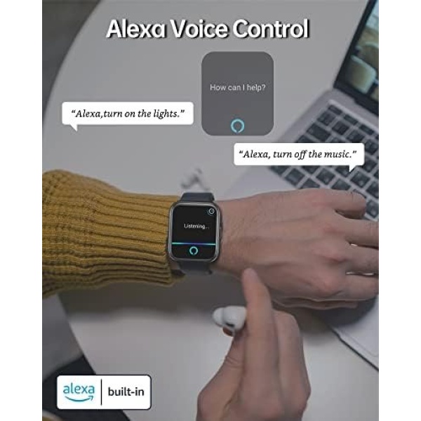 【Calling & Message Alerts & Alexa】 Connected to your phone via bluetooth and APP, this smartwatch with built-in Alexa voice assistant frees you from the anxiety of missing important calls and messages. By setting call and message alerts to vibrate or ring, you will know exactly which call or message you need to respond to in a timely manner. (Note: The smartwatch can receive messages from Facebook, Twitter, Ins, Whatsapp and more but it does not support sending texts.)