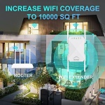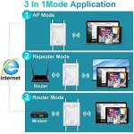 【1200Mbps Stable Signal Booster&360°Full Coverage】The internet booster WiFi repeater comes with dual band technology, provide up to 300Mbps for 2.4GHz, up to 866Mbps for 5Ghz, 360 degree high-speed connection and 4 external High-Gain antennas provide a powerful stable signal and greater penetration for happy Surfing HD video and online game.